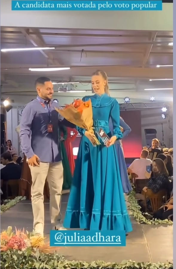 A candidata à rainha da 34ª Festa Nacional do Pinhão, Júlia Adhara, foi apontada na enquete realizada pelo NSC como a preferida do público entre as 11 que estavam na disputa (uma das 12 foi eliminada por não atender os quisitos do concurso). Estranhamente não ficou nem entre as seis. Essa eu não entendi! Sem contar que seu discurso sobre Lages foi belíssimo. O melhor de todos!
