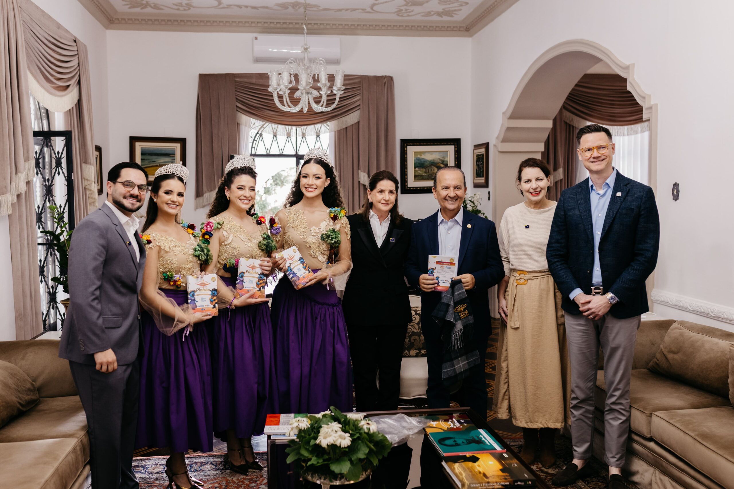 A semana começou com um importante movimento de divulgação da 35ª Festa Nacional do Pinhão, em Florianópolis. A comitiva lageana, composta pela realeza, a prefeita Carmen Zanotto e organizadores da festa, cumpriu agenda na capital do Estado nesta terça e quarta-feira (27 e 28 de maio). Visitaram a Casa d’Agronômica, onde foram recebidos pelo governador de Santa Catarina, Jorginho Mello, passando pela Assembleia Legislativa de Santa Catarina (Alesc) e principais emissoras de televisão e rádio.