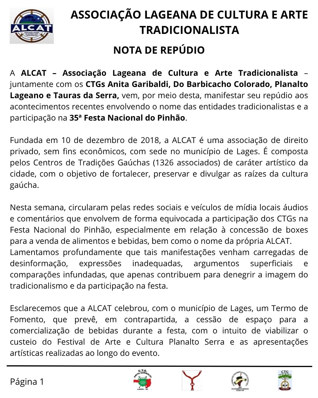 2 comentários em “Associação tradicionalista expede nota de repúdio”