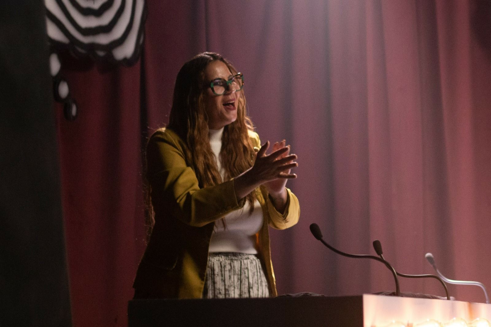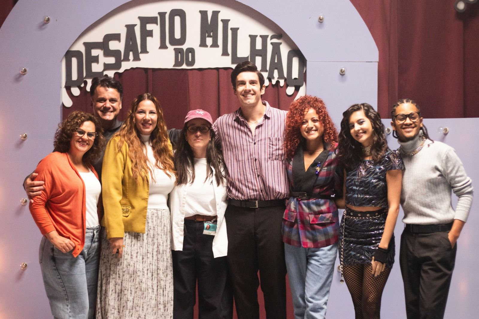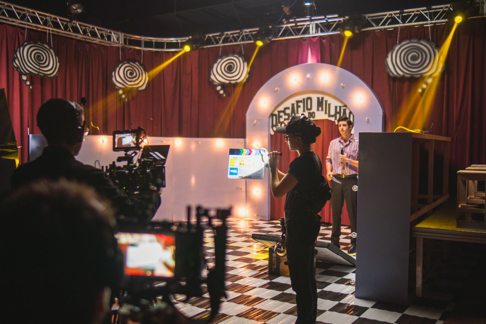 Para a filmagem, a equipe de arte e cenografia precisou desenvolver do zero todo o cenário, desde os móveis e a iluminação, até o figurino e a maquiagem, tudo inspirado na estética dos anos de 1980. “Essa cena precisava traduzir a opressão que o Miguel sente naquele momento, por isso planejamos usar bancadas altas, muitas luzes e cores”, explica a diretora de Arte Jovana Pauletti, que desenvolveu o conceito da cena junto com a diretora Anne Salles, tendo como inspiração os programas de auditório do Chacrinha e do Silvio Santos, e também o Roda Viva, que é de entrevistas.