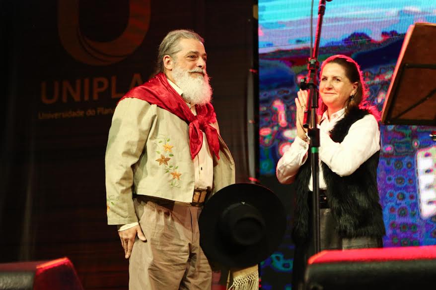 O cantor Luiz Marenco, um dos maiores nomes da música nativista, subiu ao palco e embalou o público com seus grandes sucessos, levando poesia, sentimento e identidade gaúcha para quem lotou o espaço.