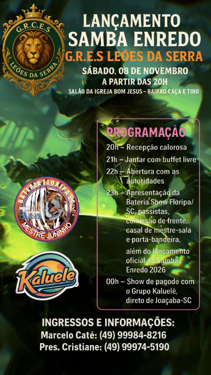 Escola de Samba Leões da Serra irá apresentar seu samba enredo 2 de outubro de 2025 Por Olivete Salmória