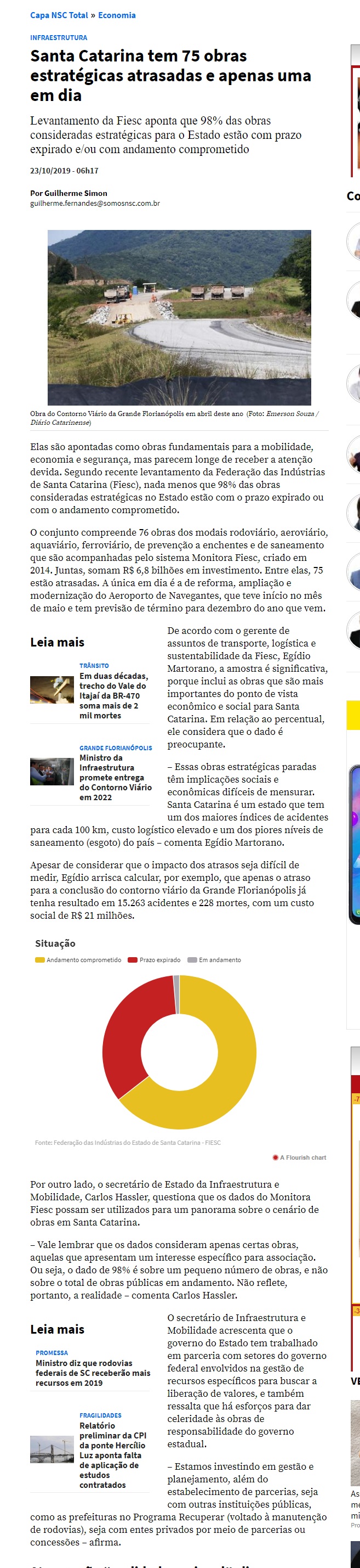 Sobre as obras atrasadas em SC