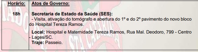 Nesta quinta-feira o governador estará em Lages e região para uma série de atos administrativos. Mas o que chama atenção na agenda de Lages e a entrega da nova ala, mais uma vez. Estão inaugurando andar por andar e no último deles deverá ser de leito por leito e equipamento por equipamento. E ainda tem gente aplaudindo por isso!