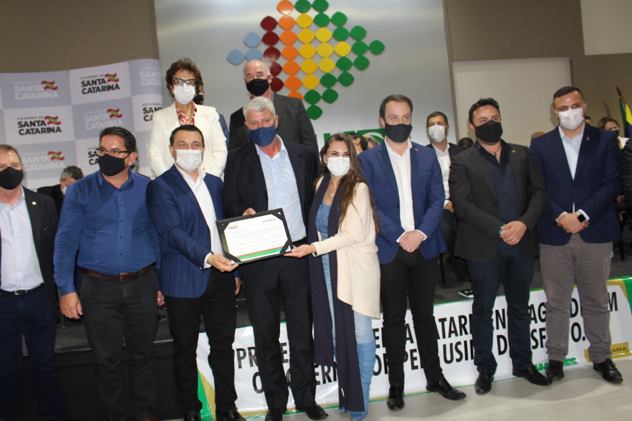 O Prefeito Fabiano Baldessar de Souza e o vice prefeito Leonir Ribeiro da Silva, participaram na tarde de ontem em Lages, de evento com o governador do estado Carlos Moises da Silva, na oportunidade ambos receberam da mãos do governador emendas no valor de um milhão e trezentos mil reais, emendas essas de vários parlamentares estaduais.