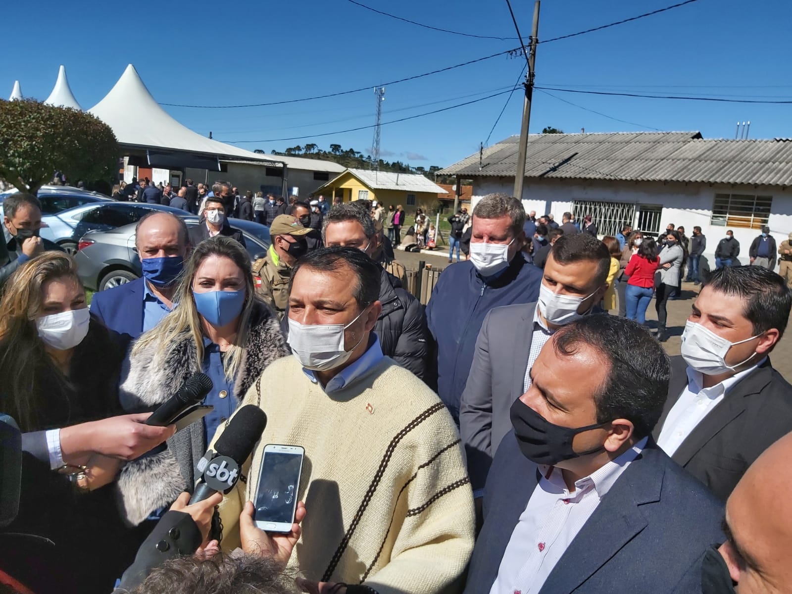 Governador em Urupema, na manhã desta sexta-feira. Foi assinar convênio para a construção da rua coberta, pavimentação de ruas e saneamento da cidade: