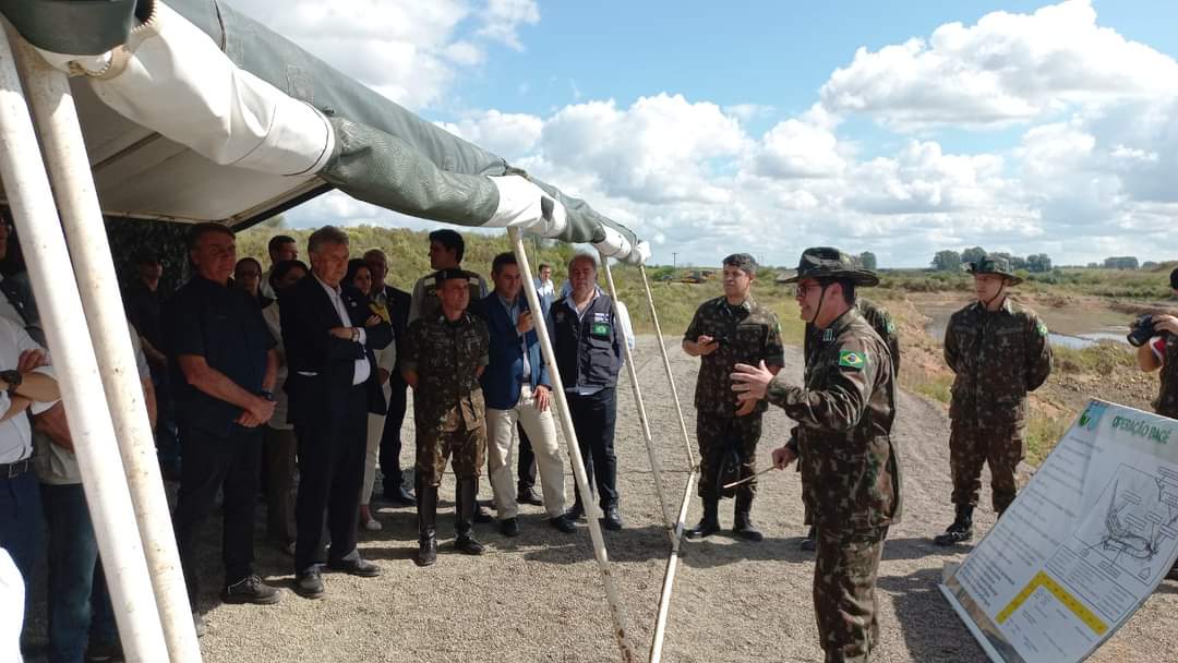 O Presidente da República, Jair Messias Bolsonaro, acompanhado do Vice – Presidente da República, General Hamilton Mourão, e demais autoridades, visitou a Operação Bagé, obra de construção da Barragem da Arvorezinha, no dia 8 de abril.