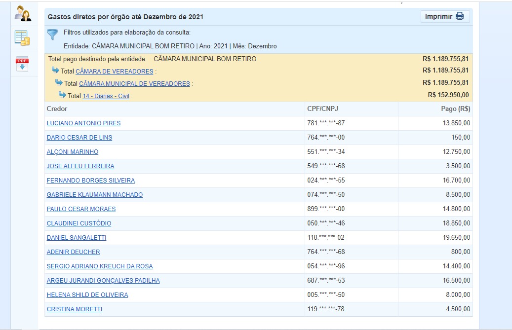 Vereadores de Bom Retiro gastaram R$ 150 mil em diárias em 2021 19 de abril de 2022 Por Olivete Salmória https://olivetesalmoria.com.br/wp-content/uploads/2022/04/WhatsApp-Video-2022-04-19-at-13.33.09.mp4 Detalhe: a Câmara de Vereadores de Bom Retiro conta com apenas nove edis Daniel Sangaletti (PSDB) foi o que mais gastou : R$ 19 mil