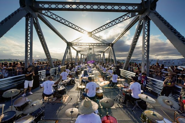 A programação do Projeto Viva a Ponte, criado pelo Governo de Santa Catarina para celebrar o reencontro dos catarinenses com a Ponte Hercílio Luz, em Florianópolis, terminou em alto nível com a apresentação da Orquestra de Baterias, no fim da tarde deste domingo, 5.